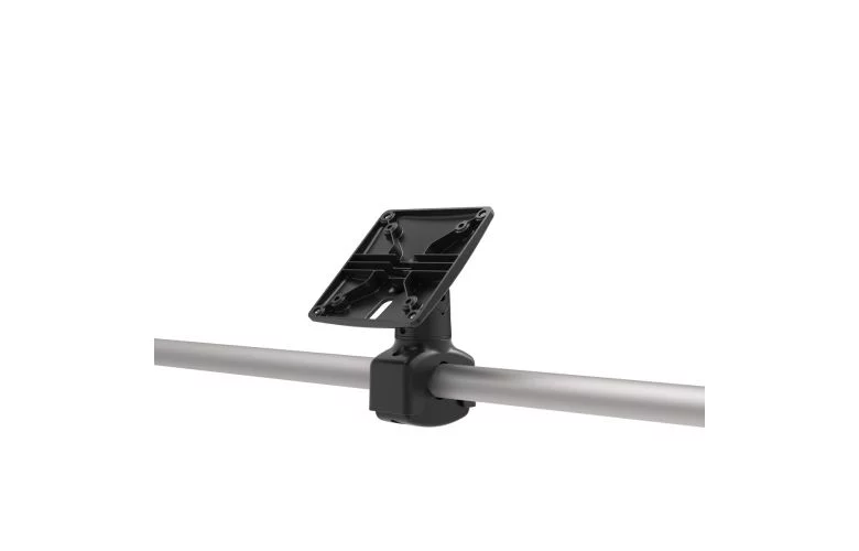 φ38.0 mmまでのレールやポールへのデバイス取り付けを可能にするマウントです。VESA規格のモニターや、弊社製のエンクロージャーを不正開封防止ネジで固定して利用します。画面サイズ15インチまでのタブレットやモニターを縦・横位置で固定できます。傾斜も可能です。